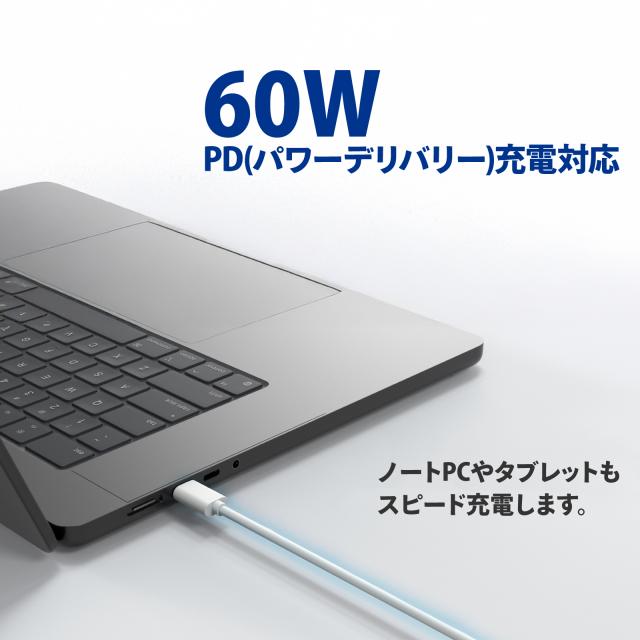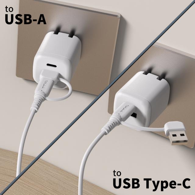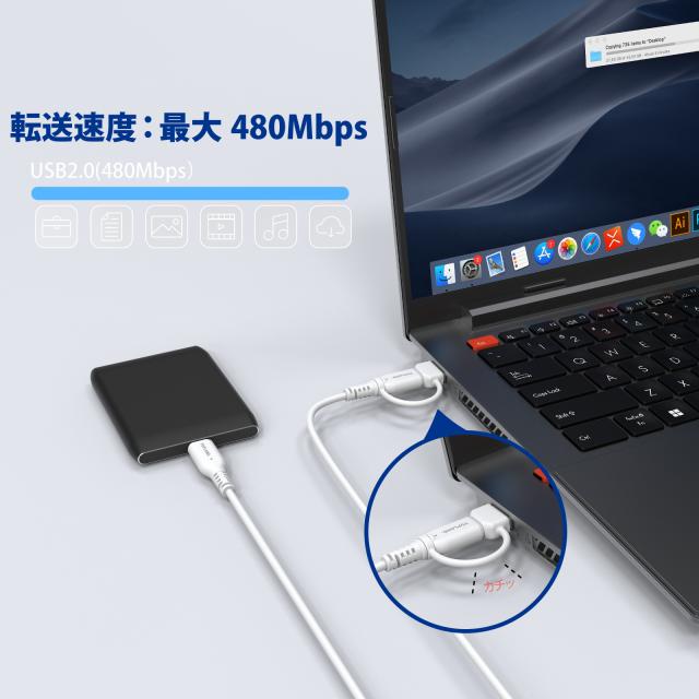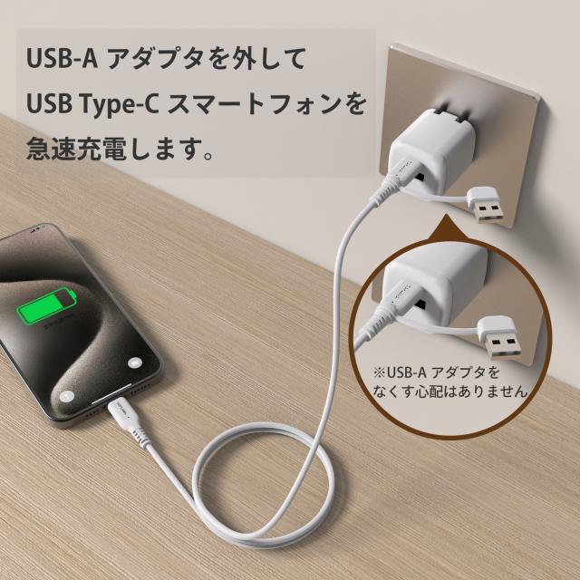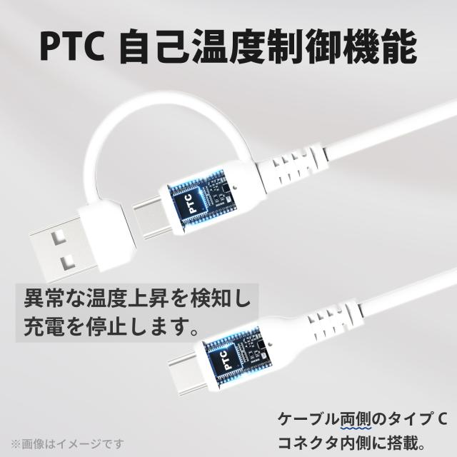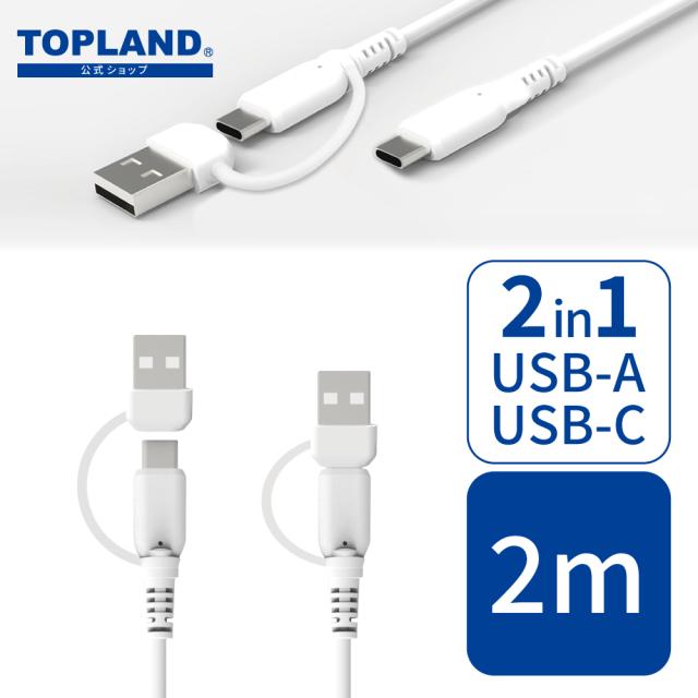 Type-C タイプC ケーブル USB 2WAY ケーブル 充電ケーブル PD対応 データ転送 急速充電 USB変換アダプタ 2m オフィス 事務所 デスクワーク 旅行 Android iPhone ホワイト CHCCA20 【トップランド 公式ショップ】