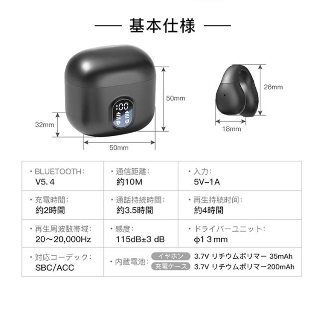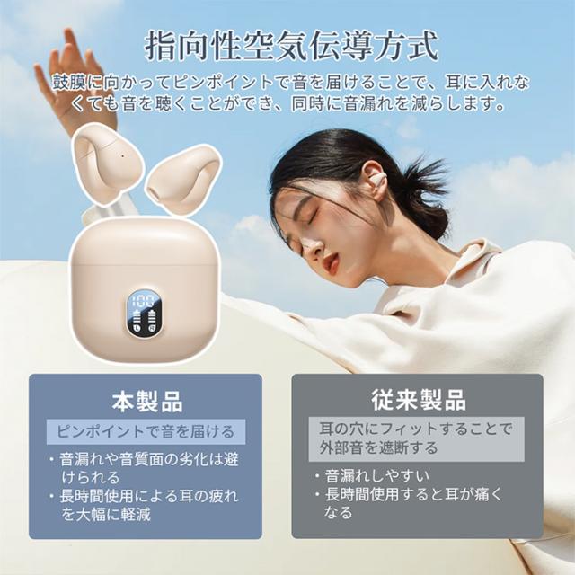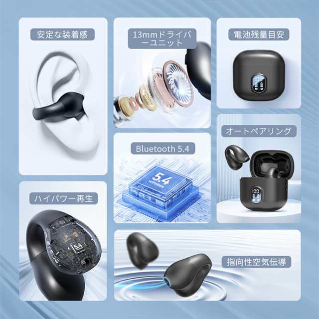 ワイヤレスイヤホン bluetooth5.4 イヤホン 指向性空気伝導 残量 オートペアリング 低遅延 睡眠 高音質 左右分離 ブルートゥース 片耳 両耳 音量調整 iPhone Android