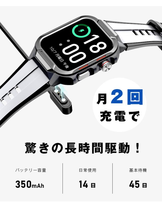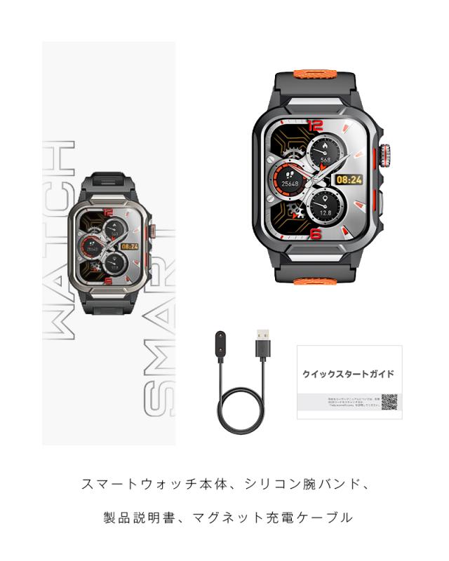 【パッケージ内容】スマートウォッチ本体*1、充電ケーブル*1、日本語取扱説明書*1。