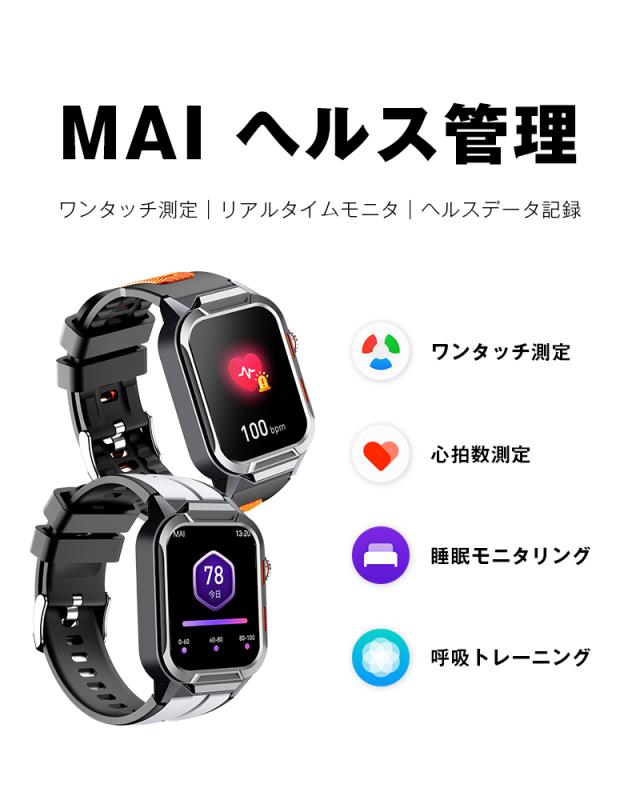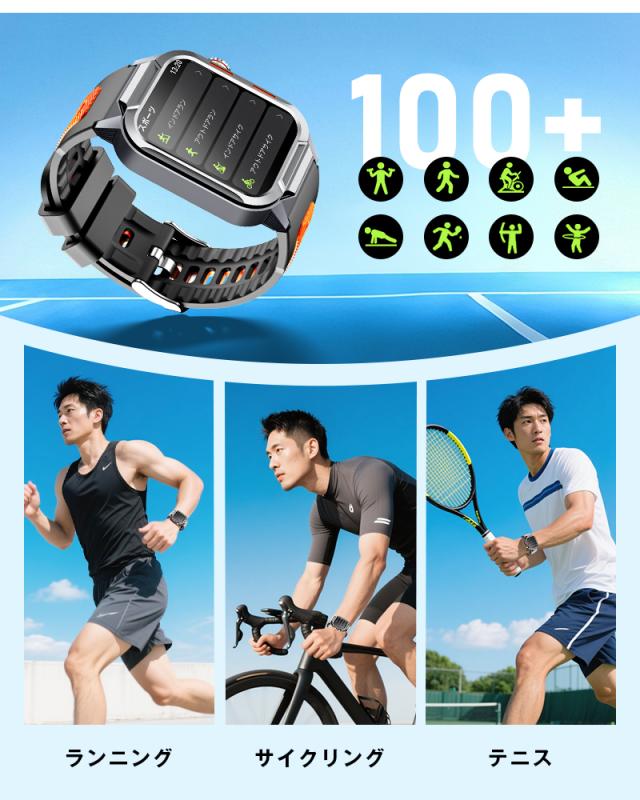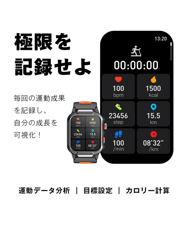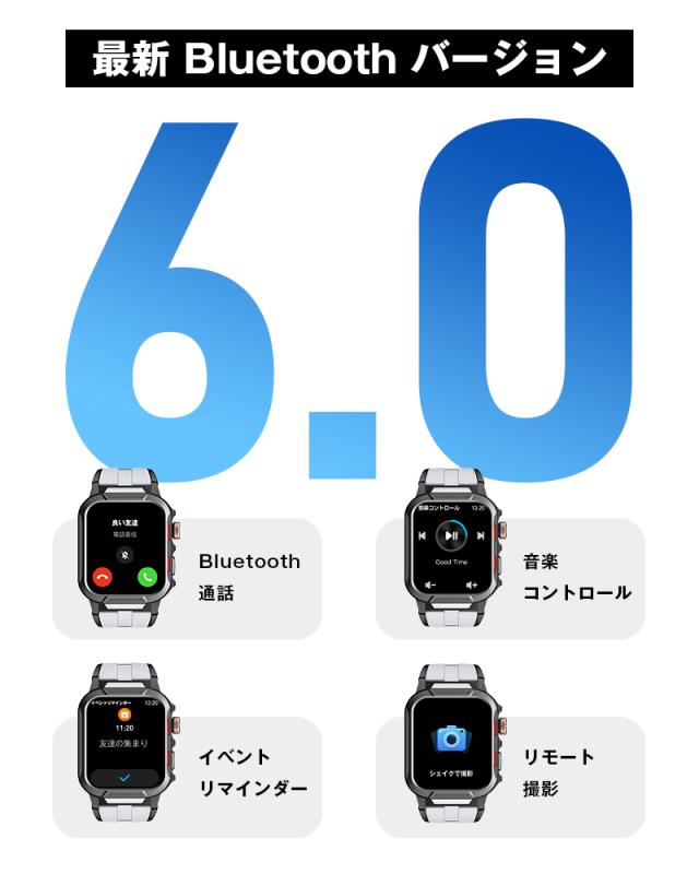 着信やメール、SMS、SNS、アプリなどの通知を即時に表示する機能付き、重要なメッセージを見逃しません。また、本体には、スピーカーが搭載、着信通知だけではなく、Bluetooth通話も対応します、スマホを取り出さず、ウォッチで通話可能です。更に、Bluetooth接続すると音楽再生/一時停止/曲切り替えなどの機能がウォッチ本体で操作できます。