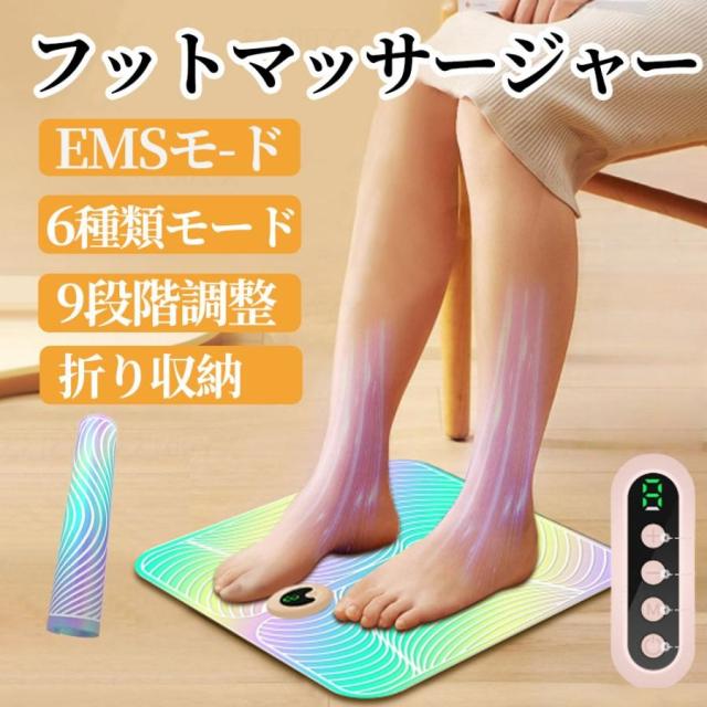フットマッサージャー 足裏 ジャー EMS 足裏 リラックス 6種類リラックスモード 9段階強度調整 全身 多機能 マッサージ 折りたたみ 軽量 小型 男女兼用 敬老の日