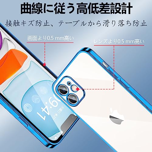 iPhone11 ケース クリア カメラ保護 薄型 軽量 変形防止 人気 スリム ソフト アイフォン 11 カバー 衝撃吸収 ストラップホール付き 指紋防止 (ブルー) 送料無料