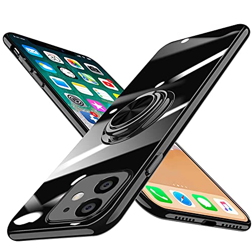 iPhone 11 ケース リング付き クリア tpu シリコン 軽量 薄型 メッキ加工 一体型 ソフト アイフォン 11 カバー 耐衝撃 透明 黄ばみなし 耐久 車載ホルダー対応 ストラップホール付き スタンド機能 全面保護 人気 スマホカバー 黒 送料無料