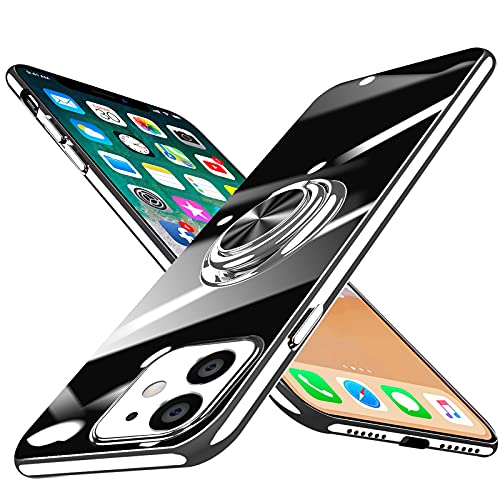 iPhone 11 ケース リング付き クリア tpu シリコン 軽量 薄型 メッキ加工 一体型 ソフト アイフォン 11 カバー 耐衝撃 透明 黄ばみなし 耐久 車載ホルダー対応 ストラップホール付き スタンド機能 全面保護 人気 スマホカバー 銀