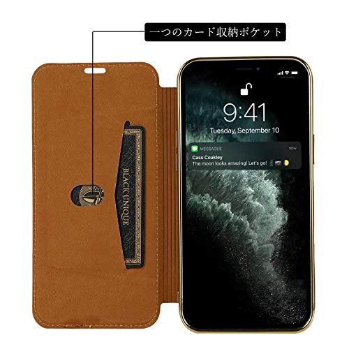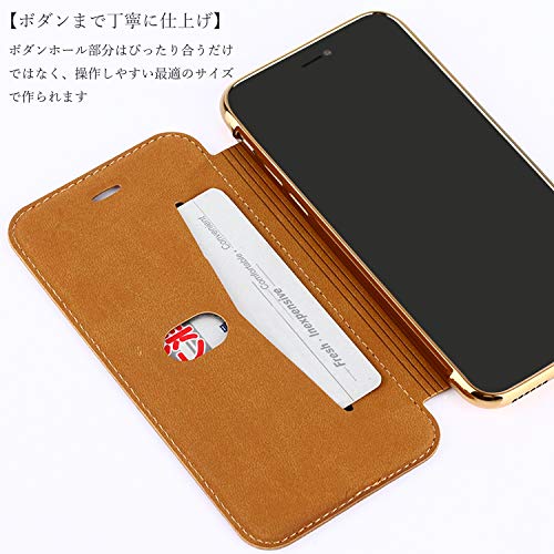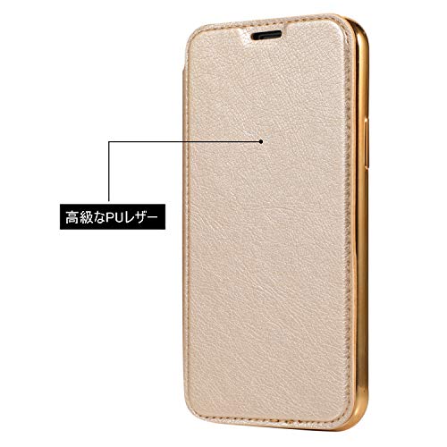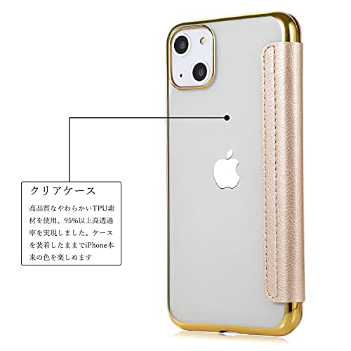 iPhone13Mini ケース手帳型 背面 クリア 透明 高級なPUレザー+TPU 衝撃吸収 軽量薄型 ブランド スマホケース アイフォン13 Mini 手帳型ケース (ゴールド)