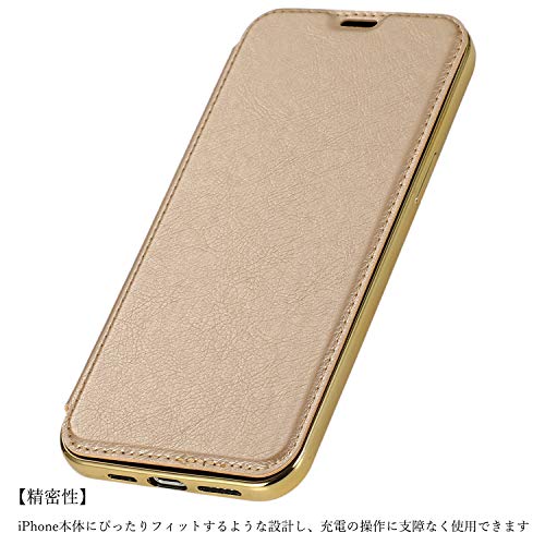 iPhone13Mini ケース手帳型 背面 クリア 透明 高級なPUレザー+TPU 衝撃吸収 軽量薄型 ブランド スマホケース アイフォン13 Mini 手帳型ケース (ゴールド) 送料無料