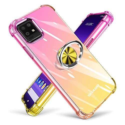 AQUOS zero6 ケース リング クリア TPU 耐衝撃ケース 透明 車載ホルダー スタンド機能 グラデーション 薄型 アクオス ゼロ6 カバー 全面保護 360回転 軽量 シリコン 黄変防止 防指紋 防塵 スリム 滑り防止 人気 SH-RM18 SHG04 A102SH スマホカバー ピンク+ゴ ...