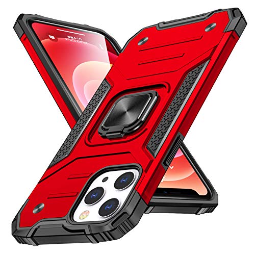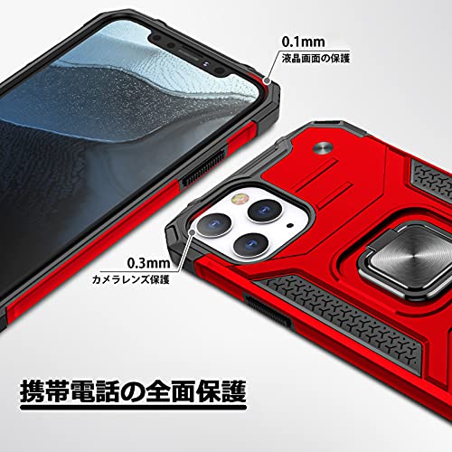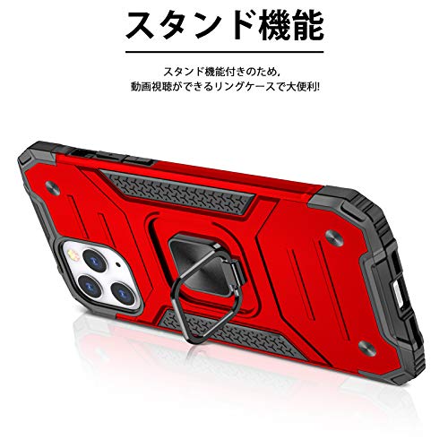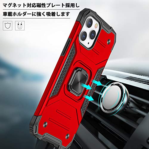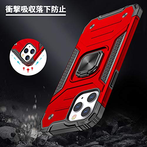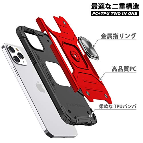iPhone 13 Pro Max ケースリング 耐衝撃 アウトドア キャンプ BBQ 野外 フェス TPU+PC 衝撃吸収 カバー レンズ保護 リングつき 指紋防止車載ホルダー対応 360°回転 スタンド機能 防塵 薄型 落下防止 擦り傷防止 アイフォン 13 Pro Max レッド