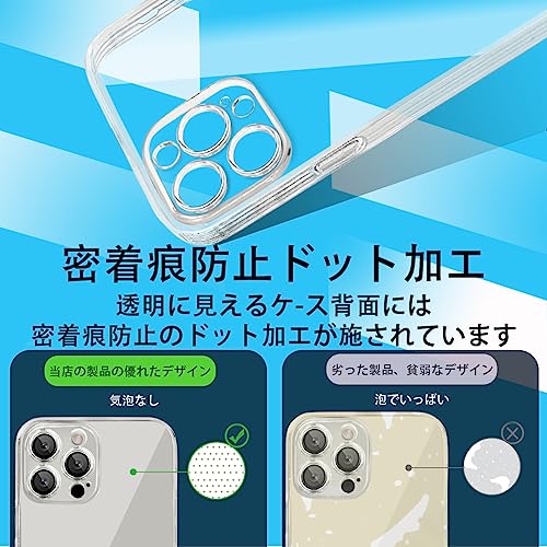 【耐衝撃、全面保護】iPhone 13 Pro ケースは柔らかいTPU素材を使用し、本体との擦れを防げ、柔軟性が高く、着脱が簡単で。スクリーンやカメラ周辺の縁を高くすることで傷から保護します。四つ角にも側面にも耐衝撃クッションを搭載したことで、落下時のダメージを最小限に抑えることが可能です。大事なデバイスを全面保護します。