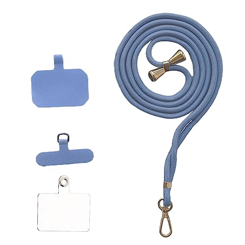 スマホストラップ ネックストラップ ナイロン製 1本+3枚入 スマホ タグパッチ 携帯ストラップ 肩掛けストラップ 首掛け 斜め掛け 長さ調整可能 軽量 着脱簡単 紛失 / 落下防止 携帯 / 鍵 / カメラに 全機種対応 (Grayish blue-golden) 送料無料