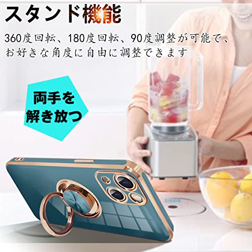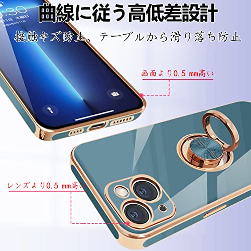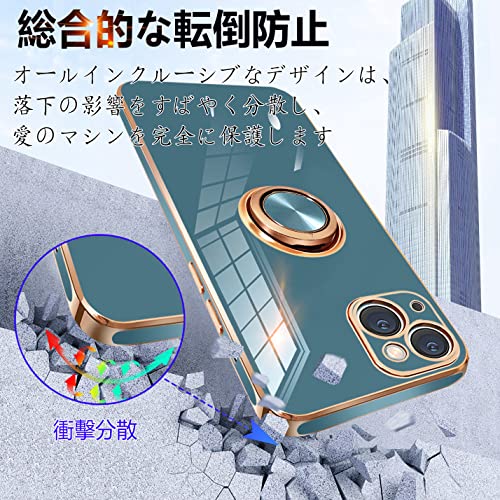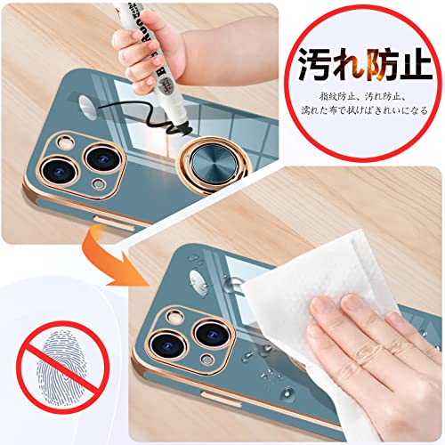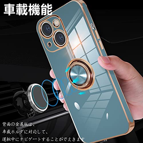 iPhone13 ケース リング付き アイフォン 13 カバー リング 耐衝撃 スマホカバー TPU 軽量 シリコン スタンド機能付き 360回転車載ホルダー 6.1インチ(グレーブルー)