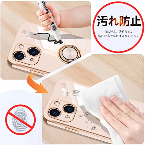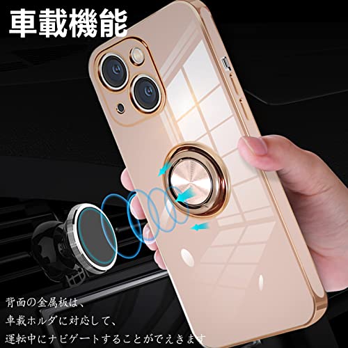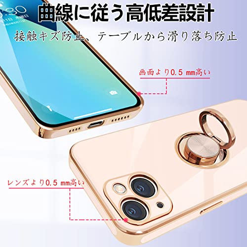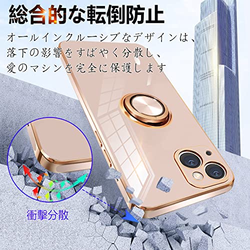 iPhone13 ケース リング付き アイフォン 13 カバー リング 耐衝撃 スマホカバー TPU 軽量 シリコン スタンド機能付き 360回転車載ホルダー 6.1インチ(ピンク)