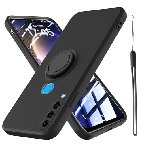 Huawei P30 lite ケース シリコン 薄型 リング付き 可愛い スリム ソフト カバー 耐衝撃 TPU ストラップホール シンプル スマホケース 耐久性 スタンド機能 サラサラ 指紋防止 ファーウェイ P30 lite カバー 黒