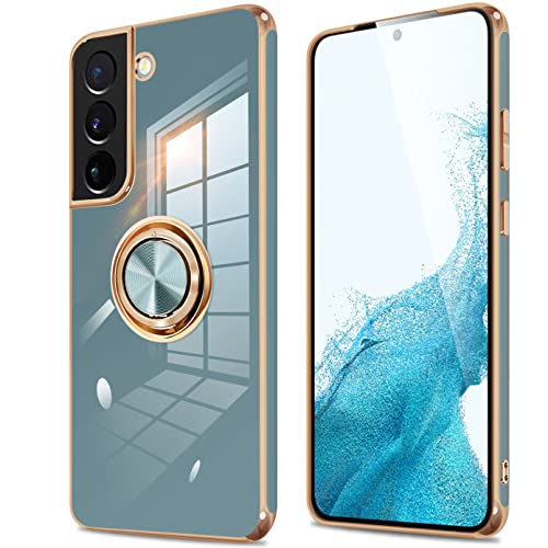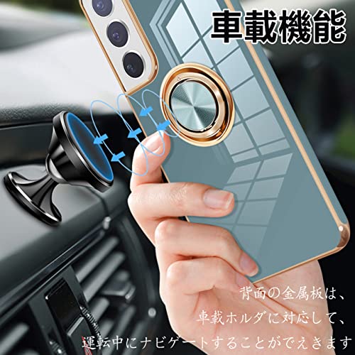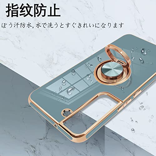 Galaxy S22 ケース リング付き 耐衝撃 TPU 軽量 SC-51C SCG13 カバー ギャラクシーS22 スマホケース 指紋防止 車載ホルダー スタンド機能 360度 ストラップホール付き (グレーブルー) 送料無料