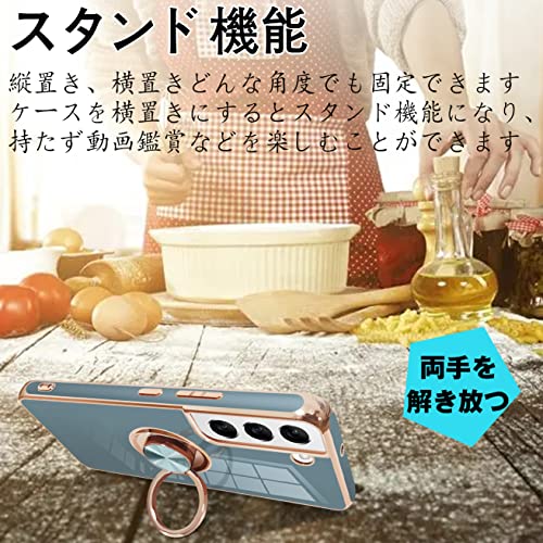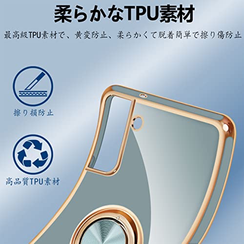 Galaxy S22 ケース リング付き 耐衝撃 TPU 軽量 SC-51C SCG13 カバー ギャラクシーS22 スマホケース 指紋防止 車載ホルダー スタンド機能 360度 ストラップホール付き (グレーブルー)