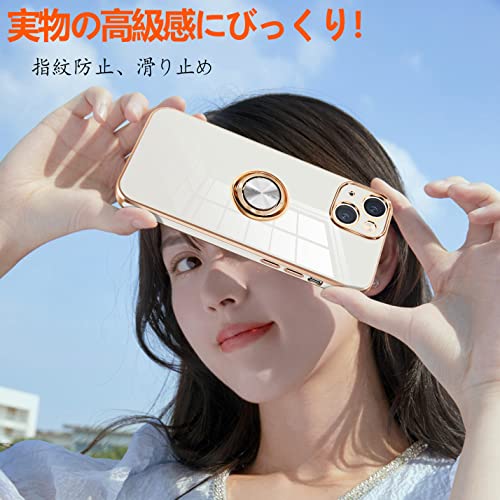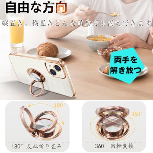 iPhone15 ケース リング付き アイフォン 15 カバー リング 耐衝撃 スマホカバー TPU 軽量 シリコン スタンド機能付き 360回転車載ホルダー 6.1インチ(クリーミーホワイト)