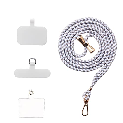 スマホストラップ ネックストラップ ナイロン製 1本+3枚入 スマホ タグパッチ 携帯ストラップ 肩掛けストラップ 首掛け 斜め掛け 長さ調整可能 軽量 着脱簡単 紛失 / 落下防止 携帯 / 鍵 / カメラに 全機種対応 (Gray and white)