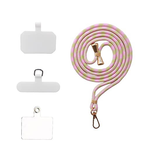 スマホストラップ ネックストラップ ナイロン製 1本+3枚入 スマホ タグパッチ 携帯ストラップ 肩掛けストラップ 首掛け 斜め掛け 長さ調整可能 軽量 着脱簡単 紛失 / 落下防止 携帯 / 鍵 / カメラに 全機種対応 (Pinkish yellow)