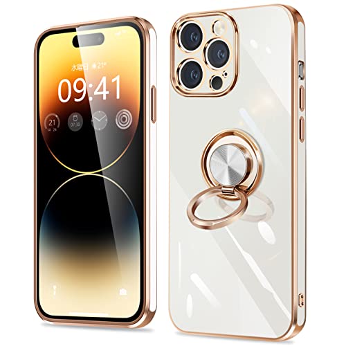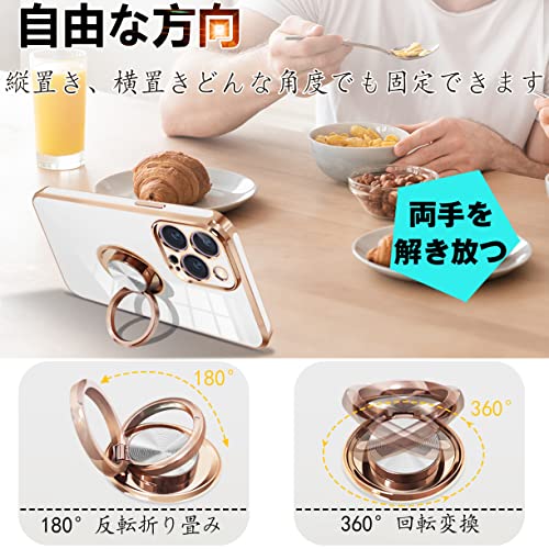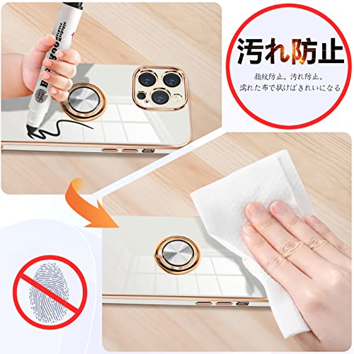 iPhone14 Pro ケース リング付き アイフォン14Pro カバー リング スマホカバー 耐衝撃 TPU 軽量 シリコン スタンド機能付き 360回転車載ホルダー 6.1インチ(クリーミーホワイト)