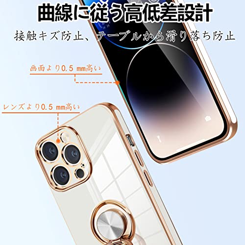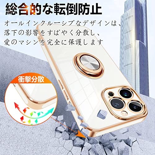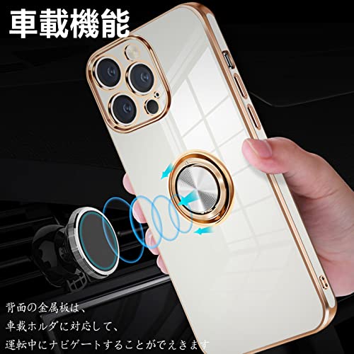 iPhone14 Pro ケース リング付き アイフォン14Pro カバー リング スマホカバー 耐衝撃 TPU 軽量 シリコン スタンド機能付き 360回転車載ホルダー 6.1インチ(クリーミーホワイト) 送料無料