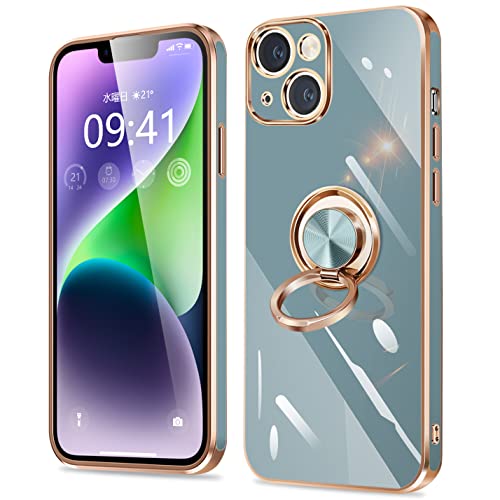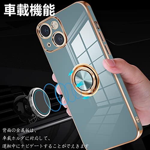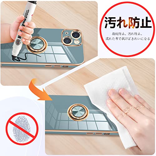 iPhone14 ケース リング付き アイフォン 14 カバー リング スマホカバー 耐衝撃 TPU 軽量 シリコン スタンド機能付き 360回転車載ホルダー 6.1インチ(グレーブルー)
