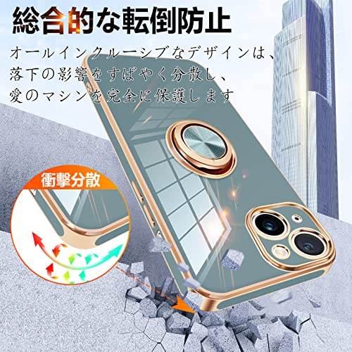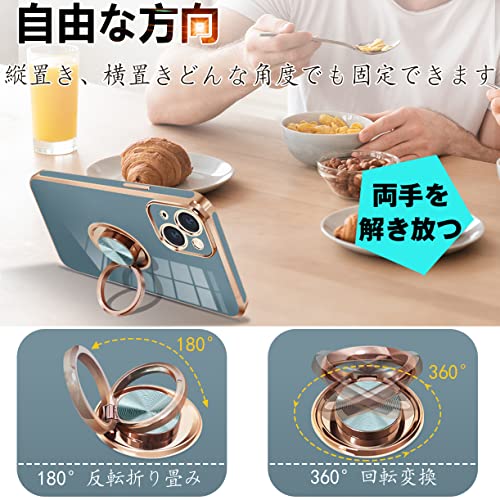 iPhone14 ケース リング付き アイフォン 14 カバー リング スマホカバー 耐衝撃 TPU 軽量 シリコン スタンド機能付き 360回転車載ホルダー 6.1インチ(グレーブルー) 送料無料