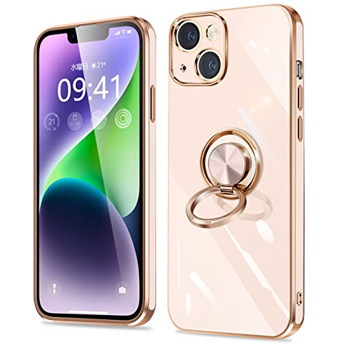 iPhone14 ケース リング付き アイフォン 14 カバー リング スマホカバー 耐衝撃 TPU 軽量 シリコン スタンド機能付き 360回転車載ホルダー 6.1インチ(ピンク) 送料無料
