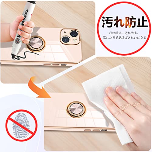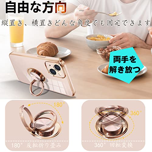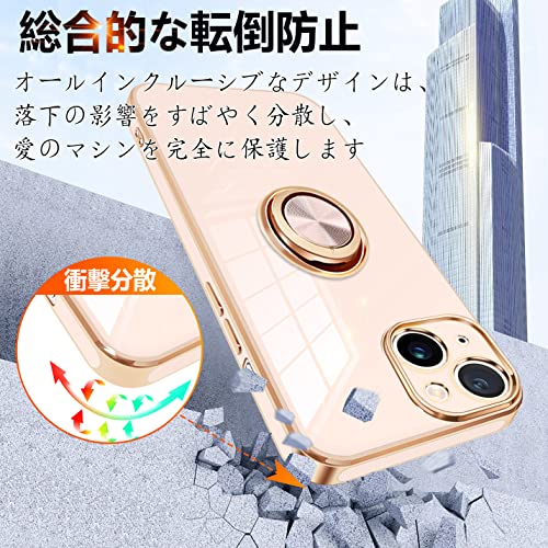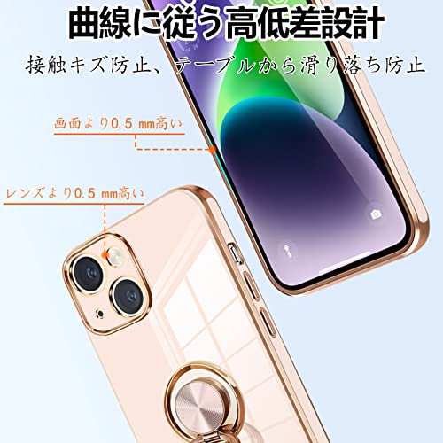 iPhone14 ケース リング付き アイフォン 14 カバー リング スマホカバー 耐衝撃 TPU 軽量 シリコン スタンド機能付き 360回転車載ホルダー 6.1インチ(ピンク)