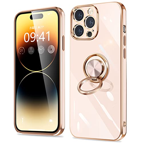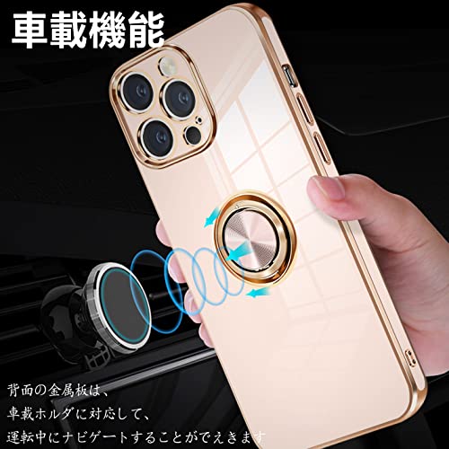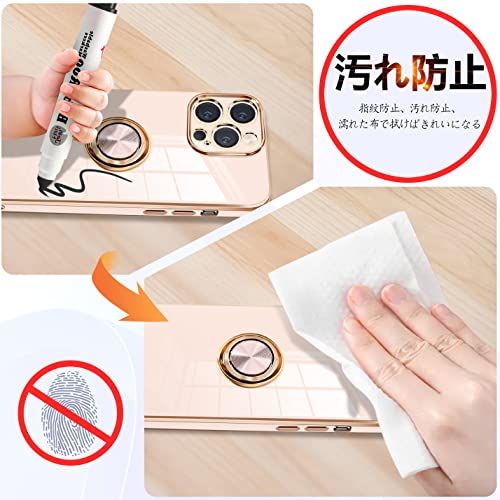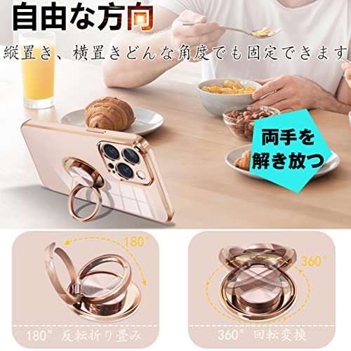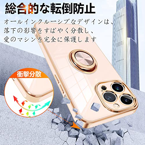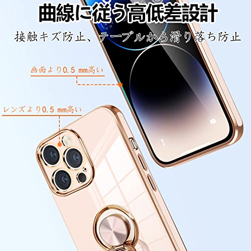 iPhone14 Pro ケース リング付き アイフォン14Pro カバー リング スマホカバー 耐衝撃 TPU 軽量 シリコン スタンド機能付き 360回転車載ホルダー 6.1インチ(ピンク)