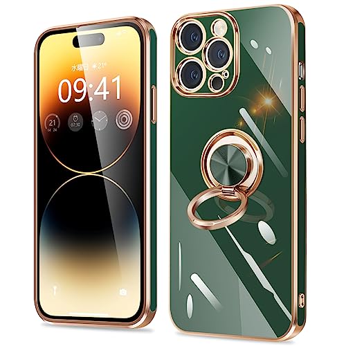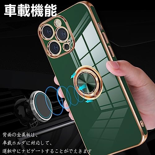 iPhone14 Pro ケース リング付き アイフォン14Pro カバー リング スマホカバー 耐衝撃 TPU 軽量 シリコン スタンド機能付き 360回転車載ホルダー 6.1インチ(ダークグリーン) 送料無料