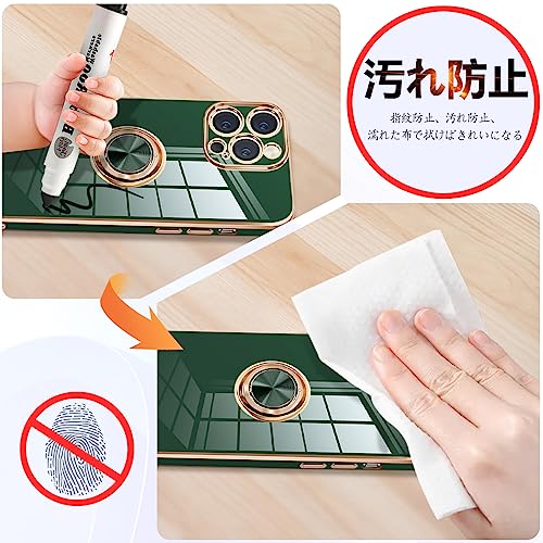 iPhone14 Pro ケース リング付き アイフォン14Pro カバー リング スマホカバー 耐衝撃 TPU 軽量 シリコン スタンド機能付き 360回転車載ホルダー 6.1インチ(ダークグリーン)