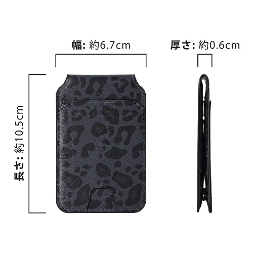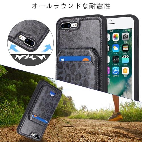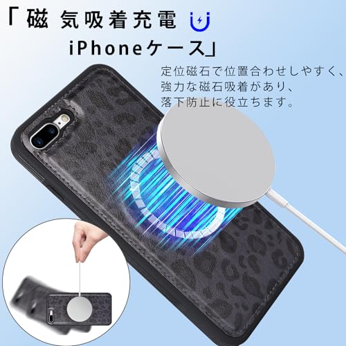 iPhone8Plus ケース MagSafe iphone 7 Plus カバー マグセーフ 分離式 耐衝撃 背面カード収納 ワイヤレス充電対応 フェイクレザー(5.5インチ対応)-ブラック (ヒョウ柄)