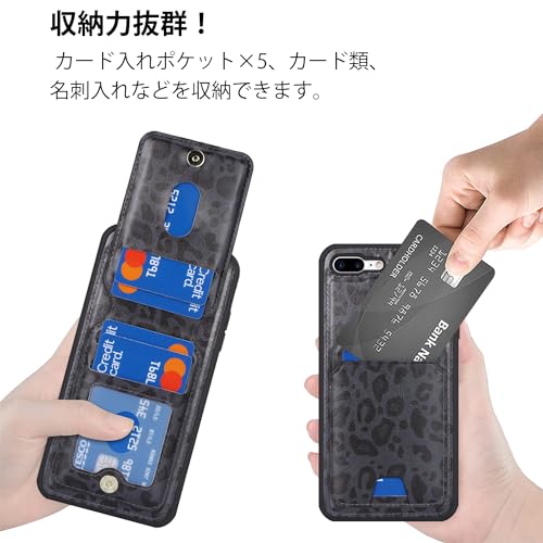 iPhone8Plus ケース MagSafe iphone 7 Plus カバー マグセーフ 分離式 耐衝撃 背面カード収納 ワイヤレス充電対応 フェイクレザー(5.5インチ対応)-ブラック (ヒョウ柄) 送料無料