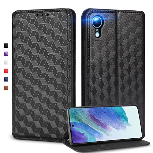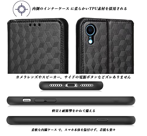 iPhone XR ケース 手帳型 PUレザー カード収納 マグネット開閉 スタンド機能 ストラップホール付き TPUソフトバンパー 全面保護 カメラ保護 衝撃吸収 ビジネス おしゃれ カバー ブラック N1 送料無料