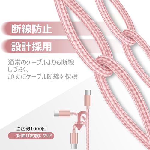 USB Type C ケーブル タイプc ケーブル QC3.0対応 スマホ充電ケーブル 急速充電 USBコード Androidケーブル iPhone15シリーズ充電ケーブル Xperia / Galaxy / Arrows / PS5コントローラー タイプc多機種対応[0.91m / ローズゴールド] 送料無料