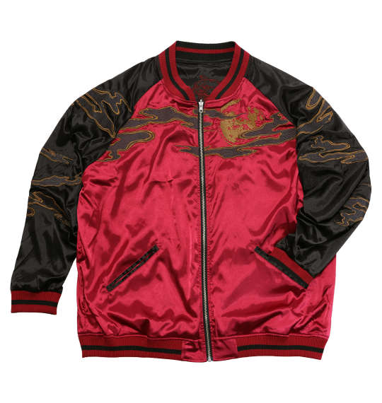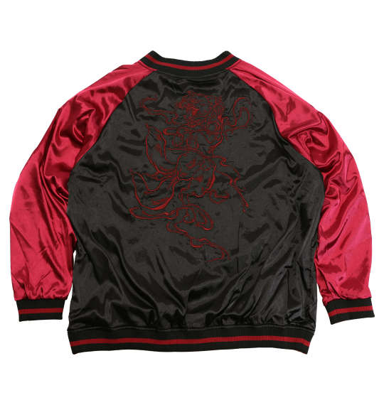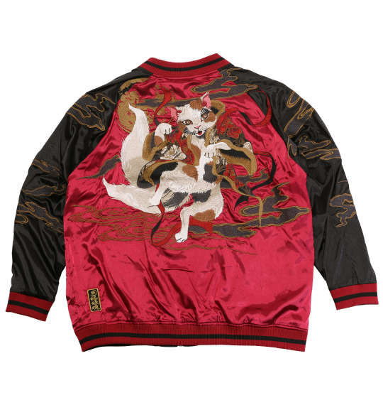 大きいサイズ メンズ 絡繰魂 猫又 リバーシブル スカジャン ワイン×ブラック 1253-5300-1 3L 4L 5L 6L