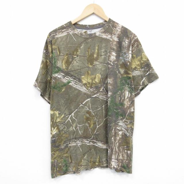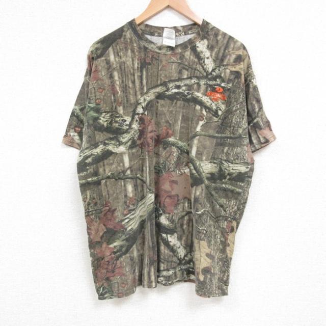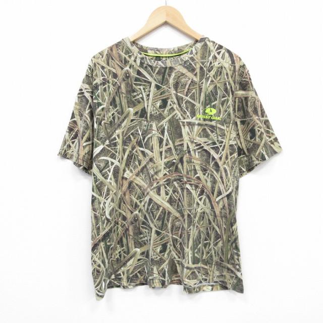 古着 半袖 Tシャツ メンズ モッシーオーク 大きいサイズ クルーネック 茶他 ブラウン 迷彩 XLサイズ 中古 中古 古着
