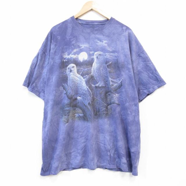 古着 THE MOUNTAIN 半袖 Tシャツ メンズ フクロウ 大きいサイズ コットン クルーネック 紫他 パープル タイダイ spe XLサイズ 中古 古着
