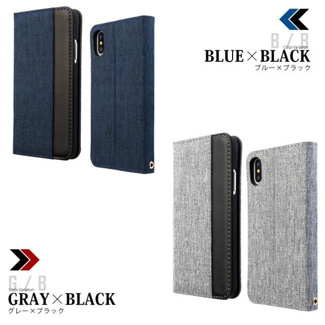 アウトレット商品 iPhone XS/X 対応 手帳型ケース キャンバス地とPUレザーで魅せる縦バイカラー 在庫限り