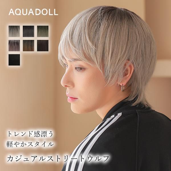 【選べるおまけ付き】アクアドール カジュアルストリートウルフ [wg355] (送料無料) ウィッグ ウイッグ ウイック ショート ウルフ フルウィッグ 男性 メンズ 男装 自然 レイヤー メンズウィッグ かつら ウィック 黒 茶 金髪 ブラウン ピンク プリン バレない