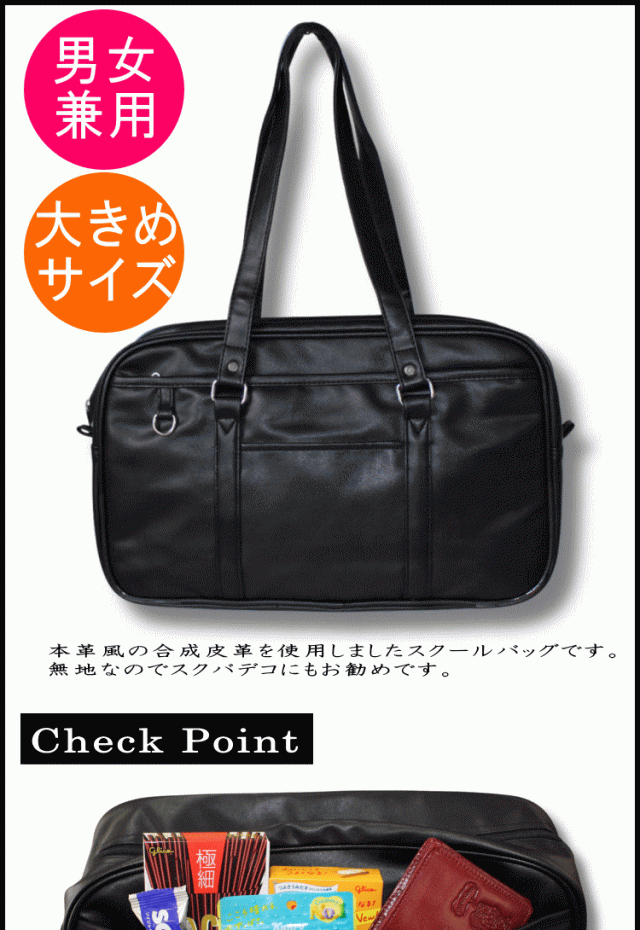 スクールバッグ 無地 本革風 大きめサイズ スクバデコ デコる 学生かばん 手提げ鞄 通学バッグ サブバッグ ブラック色 ブラウン色 1200