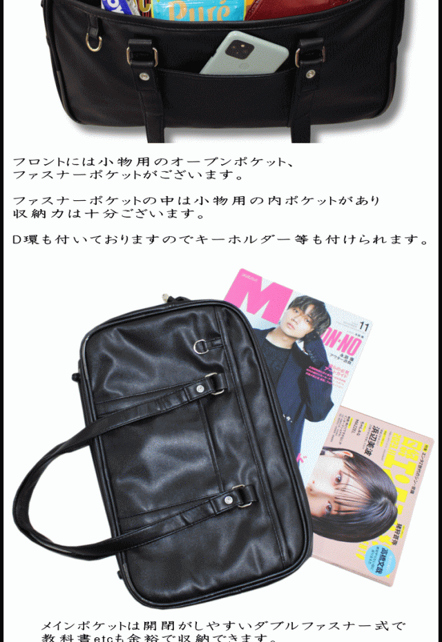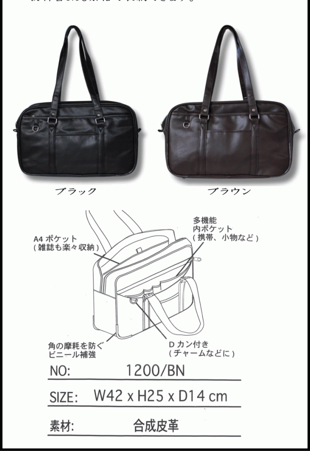 合皮 部活用バッグ メンズ レディース 男子高生 女子高生 男子中学生 女子中学生 高校生 中学生 フェイクレザー 合成皮革 学生鞄 A4サイズ 黒色 茶色 無地