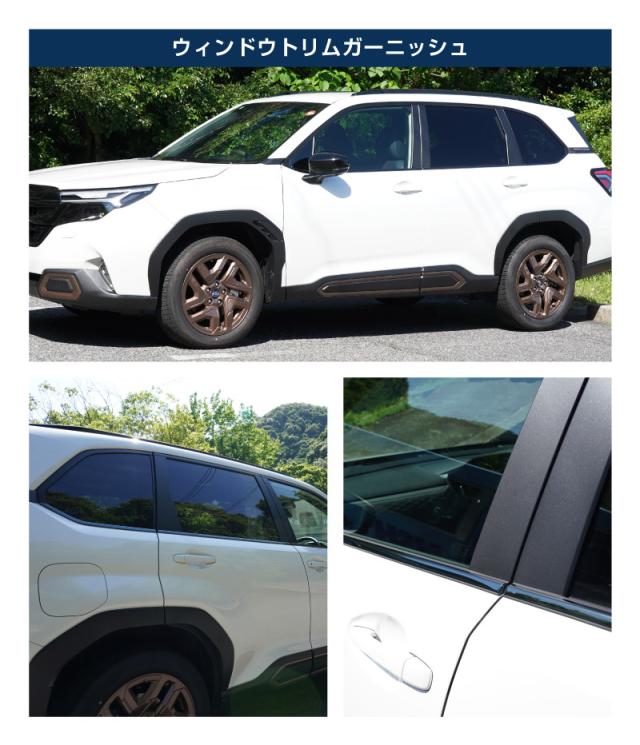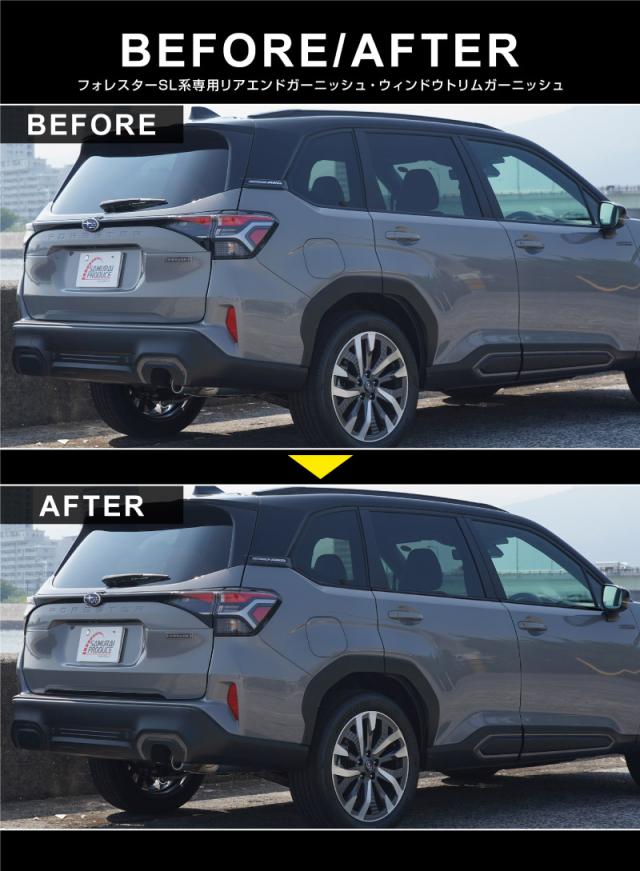 【予約/12月20日頃入荷予定】【セット割】スバル 新型フォレスター SL系 リアエンドガーニッシュ & ウィンドウトリムガーニッシュ 7P 外装パーツセット ブラック鏡面仕上げ 社外品 カスタム パーツ カー用品 アクセサリー