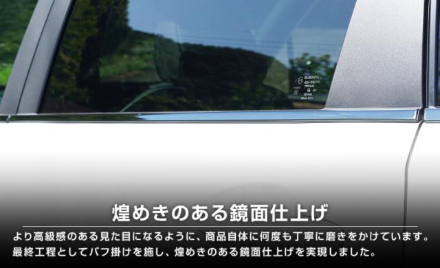 高級感のある「鏡面仕上げ」が一体感のあるスタイリッシュな雰囲気を引き出し、愛車を引き立てます。