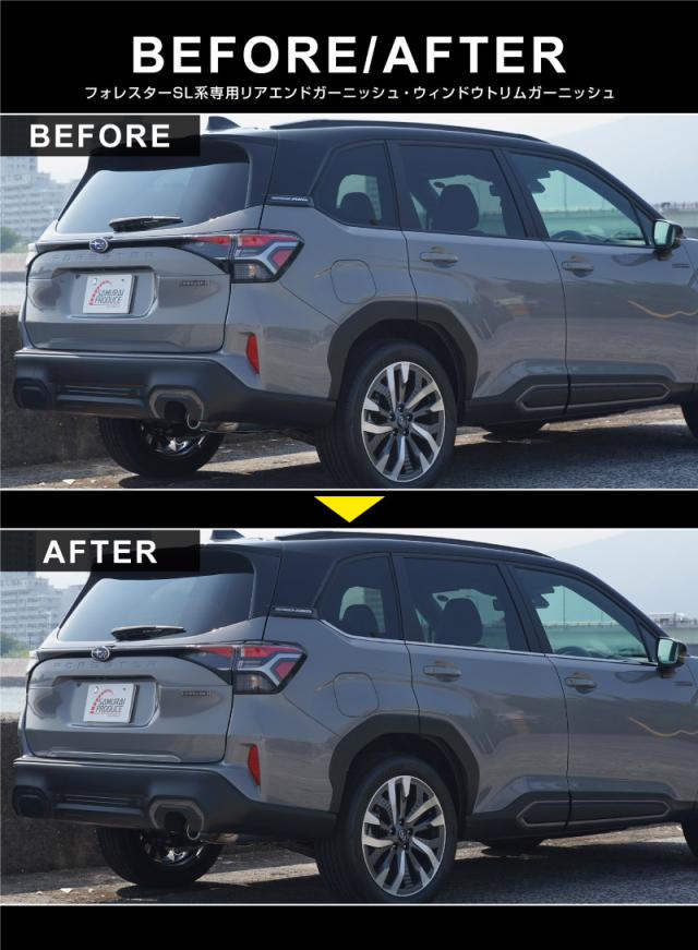 【セット割】スバル 新型フォレスター SL系 リアエンドガーニッシュ & ウィンドウトリムガーニッシュ 7P 外装パーツセット 鏡面仕上げ 社外品 カスタム パーツ カー用品 アクセサリー