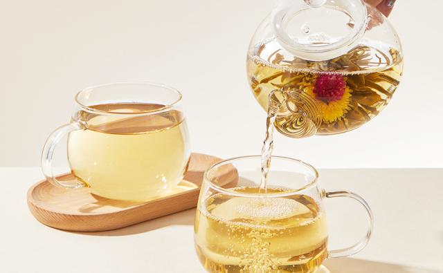 お湯を注ぐとゆっくりと咲くジャスミン茶。