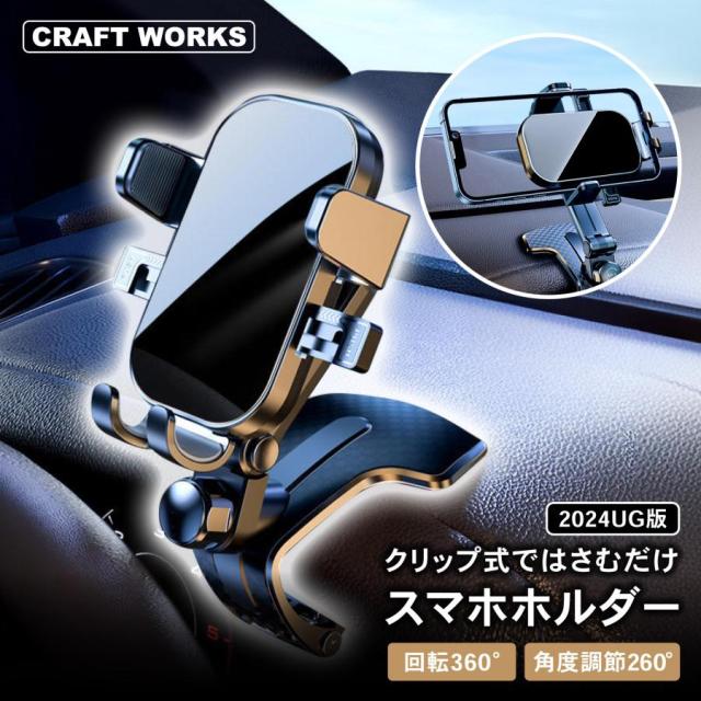 商品名[2024UG] 車載ホルダー クリップタイプ UG スマホホルダー クリップ 回転 強力 車 車用品 カー用品 スマホスタンド スマートフォン 車載 動画 iPhone Samsung android ブラック商品紹介
