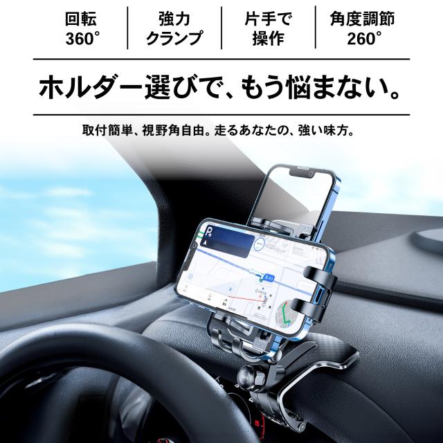 スマホホルダー 車載ホルダー クリップ式 車 固定 強力 クリップ スマホスタンド 車載 車用 携帯ホルダー スマホ 挟む ダッシュボード
