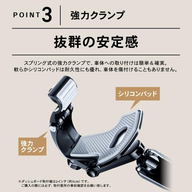 注意)ダッシュボード取付厚みは2インチ(約5cm)までです。ご購入の際には必ず、取付箇所の形状・厚み・幅等を事前確認をお願い致します。