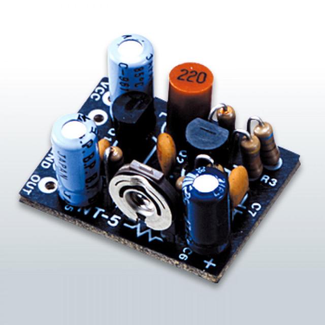 このアンプは、マイク入力がついていないアンプでちょっとマイクを使いたい時や、マイク入力はついているがもう少しゲイン(利得)が欲しい時などに便利な、超小型マイクアンプキットです。